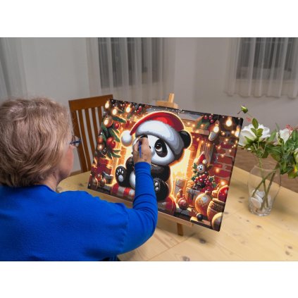 Malen nach Zahlen - Weihnachtspanda und eine Tasse Kaffee