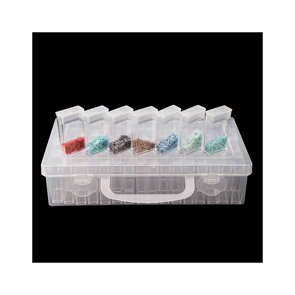 Sie haben noch ein paar restliche Diamanten und können sie nirgendwo hinstellen? Oder möchten Sie die Diamanten von Anfang an übersichtlich ordnen? Oder möchten Sie sie vielleicht auf Ihre Reisen mitnehmen? Wir empfehlen Ihnen diese praktische Kunststoffschachtel, die 64 verschließbare kleine Schachteln für Diamanten in Form der legendären Tic Tacs enthält.
